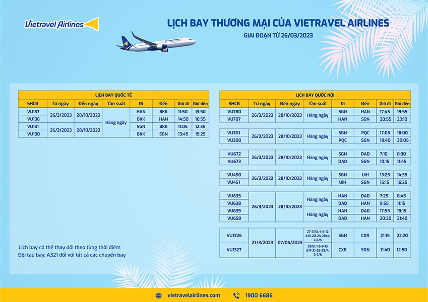 Đại diện Vietravel Airlines cho biết: dịp lễ 30/4 – 1/5 và giai đoạn hè đang được xem là “cú huých” giúp du lịch Việt Nam phục hồi và tăng trưởng mạnh mẽ. Vietravel Airlines đã có kế hoạch triển khai lịch bay mùa hè từ cuối tháng 03, chuẩn bị sẵn sàng nguồn lực để phục vụ khối lượng lớn hành khách trong và ngoài nước, mang đến nhiều lựa chọn linh hoạt và tiện lợi với mức giá hợp lý trong dịp cao điểm lễ và hè 2023.