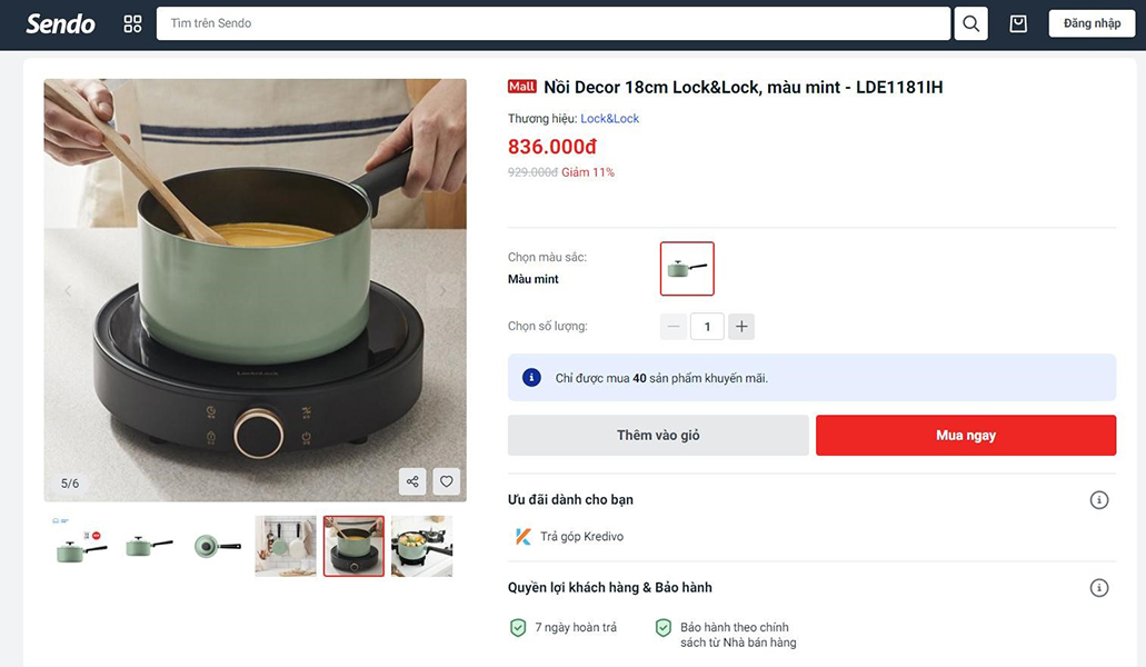 Hiện sản phẩm có bán tại SenMall được Lock&Lock trực tiếp phân phối. Nếu ngại về chi phí bạn có thể tham khảo thanh toán bằng hình thức Mua Trước Trả Sau để giảm áp lực chi phí. Ngoài ra khi thanh toán Mua Trước Trả Sau qua Kredivo tại Sendo, bạn còn được giảm thêm đến 500.000đ khi chọn kỳ hạn thanh toán là 6 tháng, 12 tháng. Bên cạnh đó bạn còn được miễn phí vận chuyển cho mọi đơn hàng, áp dụng cùng với ưu đãi 500.000đ khi Mua Trước Trả Sau qua Kredivo.