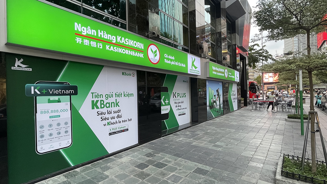 KASIKORNBANK PCL (KBank) – Ngân hàng quốc tế hàng đầu Thái Lan với hơn 80 năm kinh nghiệm, chính thức xuất hiện tại Việt Nam với một Chi nhánh cung cấp đầy đủ các loại hình dịch vụ tọa lạc tại thành phố Hồ Chí Minh vào năm 2021. Để phục vụ các khách hàng là các tập đoàn hay các doanh nghiệp vừa và nhỏ (SME) với các khoản vay kinh doanh, tài trợ thương mại và giải pháp quản lý tiền mặt, KBank tận dụng chuyên môn của mình để mở rộng trong lĩnh vực ngân hàng bán lẻ, cung cấp các sản phẩm tiền gửi, cho vay cá nhân và thẻ tín dụng được thiết kế phù hợp với nhu cầu của khách hàng bản địa thông qua công nghệ ngân hàng di động kỹ thuật số, phản ánh cam kết của KBank “Vì khách là trên hết từ 1945”.