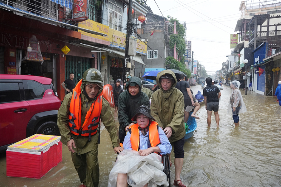 Lực lượng chức năng cùng các lực lượng vũ trang đã tập trung người và phương tiện để đưa 29 bệnh nhân từ bệnh viện phục hồi chức năng ở khu vực ngập sâu thuộc phường Phú Xuân đến nơi an toàn. Nhiều bệnh nhân đã không kìm được cảm xúc khi được đưa ra khỏi khu vực ngập lụt.