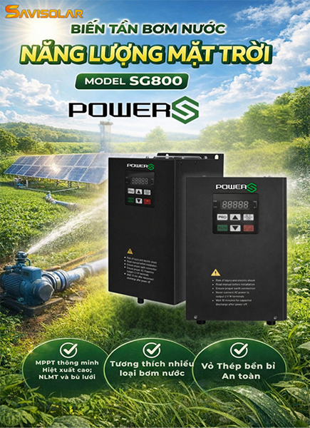 Hiện nay, Savisolar đang phân phối các dòng biến tần bơm nước của thương hiệu PowerS, sản phẩm được thiết kế để hoạt động ổn định trong điều kiện môi trường khắc nghiệt và có khả năng tối ưu hiệu suất khai thác năng lượng mặt trời.